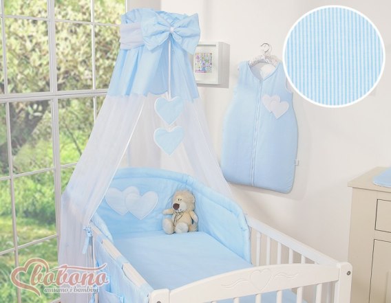 Bobono Baldachim z tiulu- Serduszka paski niebieskie