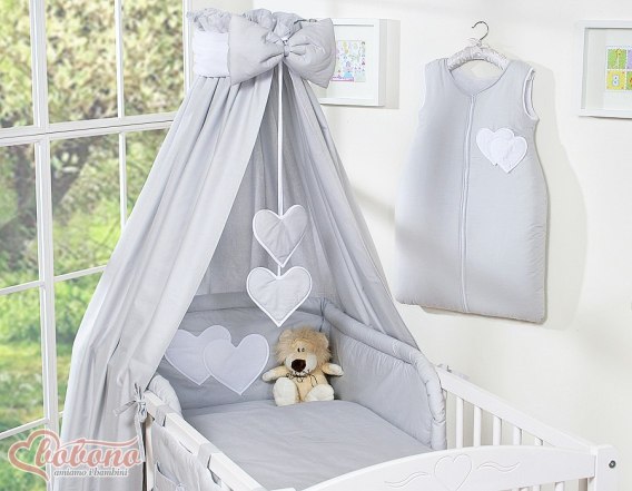 • Bobono Baldachim z tkaniny- Serduszka szare