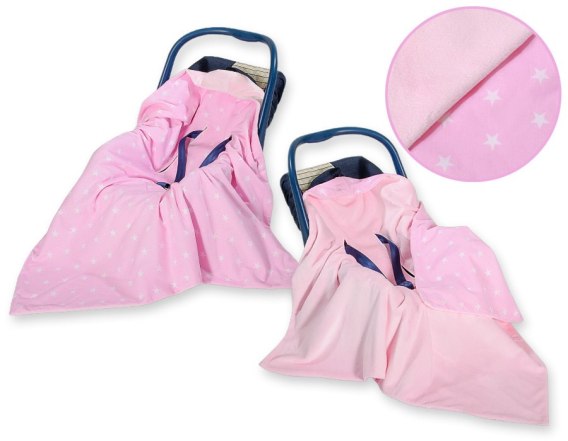 • Bobono Duży otulacz dla niemowląt do fotelika nosidełka wózka dwustronny - Gwiazdki różowe