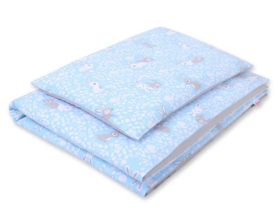 Bobono Dwustronna pościel dla dzieci 2-częściowa bawełniana - króliczki niebieskie/szary