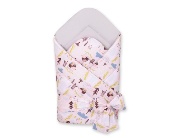 Bobono Dwustronny rożek dla niemowląt miękki z wiązaniem - misie i jeżyki różowe