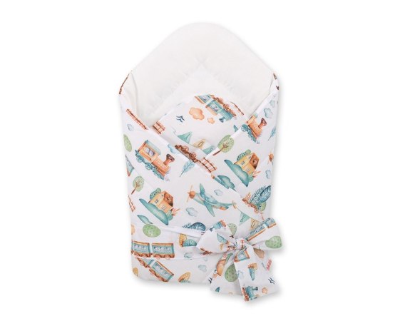 Bobono Dwustronny rożek dla niemowląt miękki z wiązaniem - pociąg turkusowy