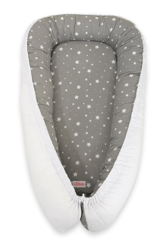 Bobono Kokon niemowlęcy dwustronny kojec otulacz Premium BOBONO- mini gwiazdki białe/ biały