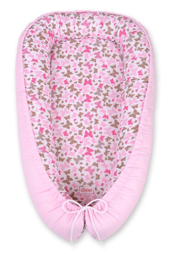 • Bobono Kokon niemowlęcy dwustronny kojec otulacz Premium BOBONO- motylki różowe/ różowy