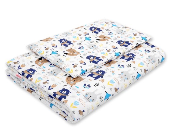 Bobono Komplet pościeli dla dzieci z wypełnieniem 120x90cm - misie granatowe