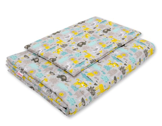 • Bobono Komplet pościeli dla dzieci z wypełnieniem 120x90cm - zwierzątka szaro-miętowe