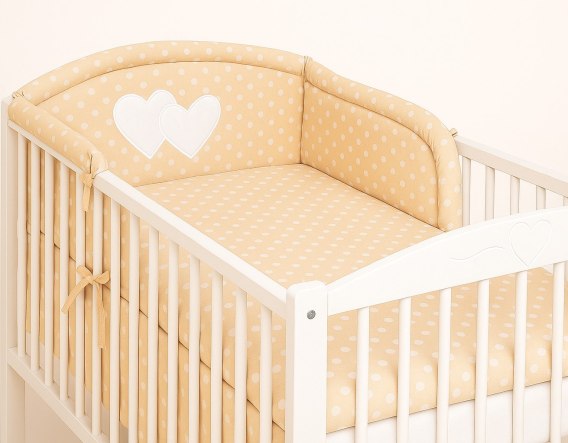 Bobono Ochraniacz do łóżeczka na szczebelki uniwersalny - Serduszka białe grochy na beżowym