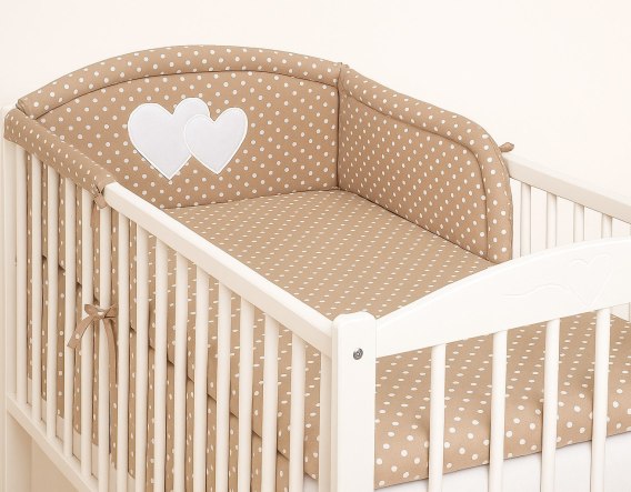 Bobono Ochraniacz do łóżeczka na szczebelki uniwersalny - Serduszka grochy na brązie