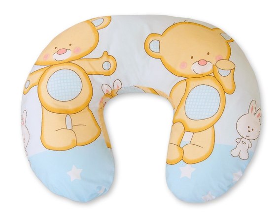 Bobono Poduszka rogal do karmienia fasolka + zdejmowana poszewka - miś przytulanka niebieski