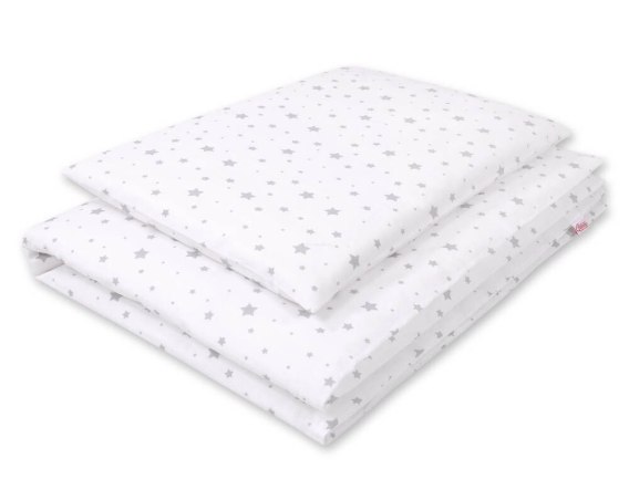 Bobono Pościel dla dzieci 2-częściowa bawełniana 120x90 cm - mini gwiazdki szare na białym tle