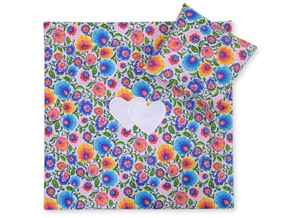 Bobono Pościel do wózka z wypełnieniem kołderka i poduszka - Serduszka folk biały
