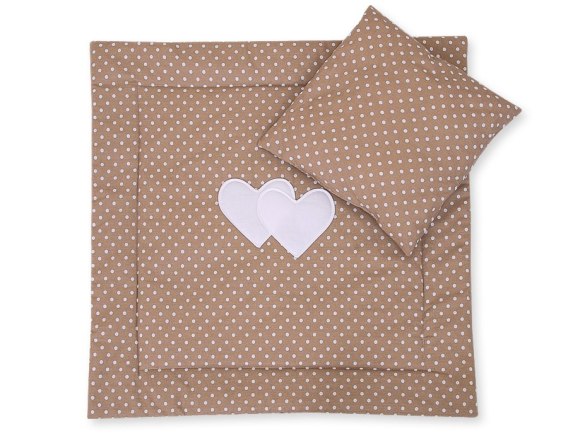 Bobono Pościel do wózka z wypełnieniem kołderka i poduszka - Serduszka groszki na brązie