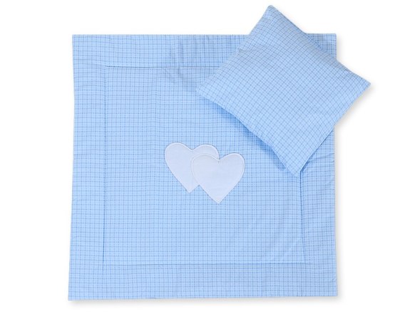 Bobono Pościel do wózka z wypełnieniem kołderka i poduszka - Serduszka kratka niebieska