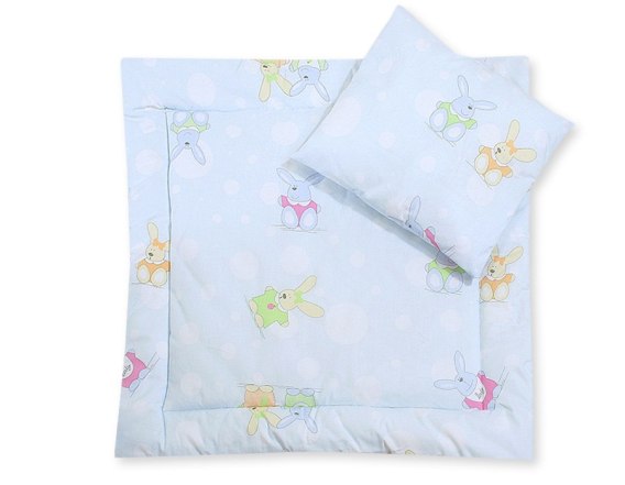 Bobono Pościel do wózka z wypełnieniem kołderka i poduszka - Wesołe zające błękitne