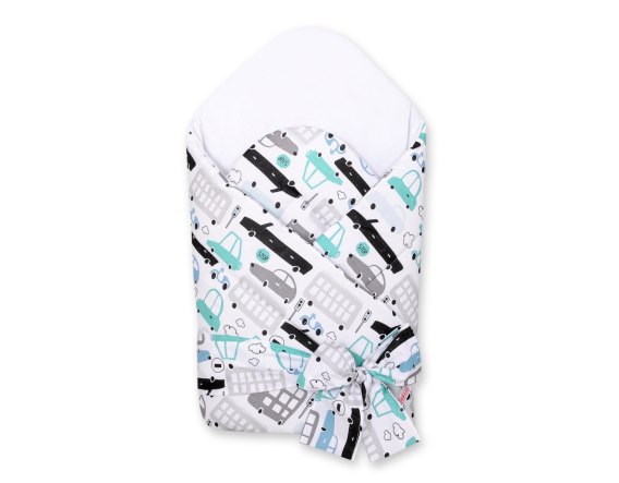 Bobono Rożek dla niemowląt usztywniany z wiązaniem - autka szaro-turkusowe