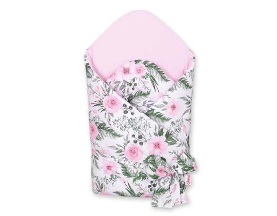 Bobono Rożek dla niemowląt z wiązaniem 2w1 usztywniany i miękki - peonie różowe
