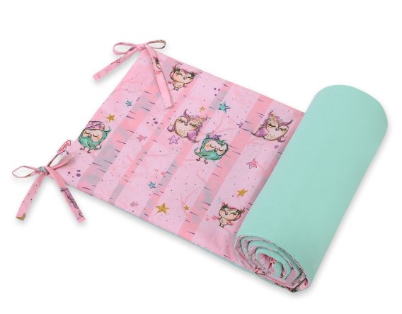 Bobono Uniwersalny ochraniacz do łóżeczka - sówki różowo-miętowe