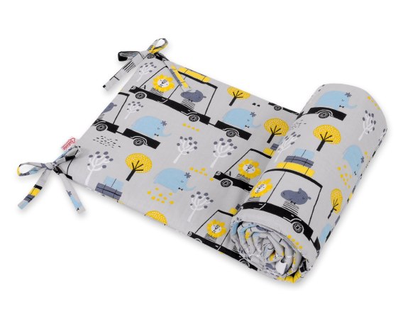 • Bobono Uniwersalny ochraniacz do łóżeczka - zwierzątka w autkach szare