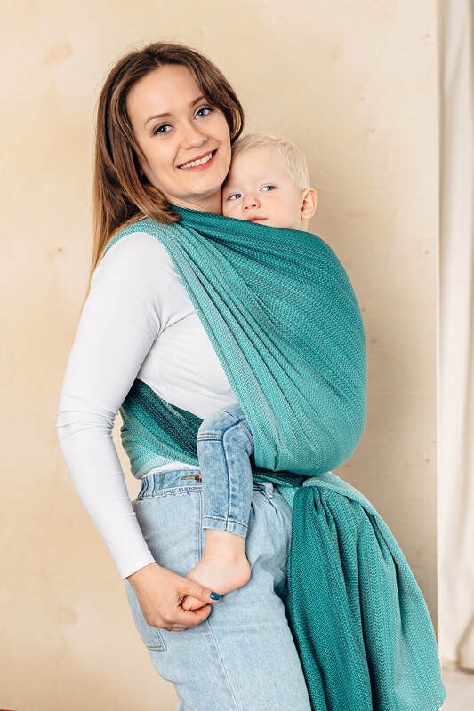 Chusta do noszenia dzieci, tkana splotem jodełkowym, bawełna - MAŁA JODEŁKA OMBRE ZIELEŃ - rozmiar XL