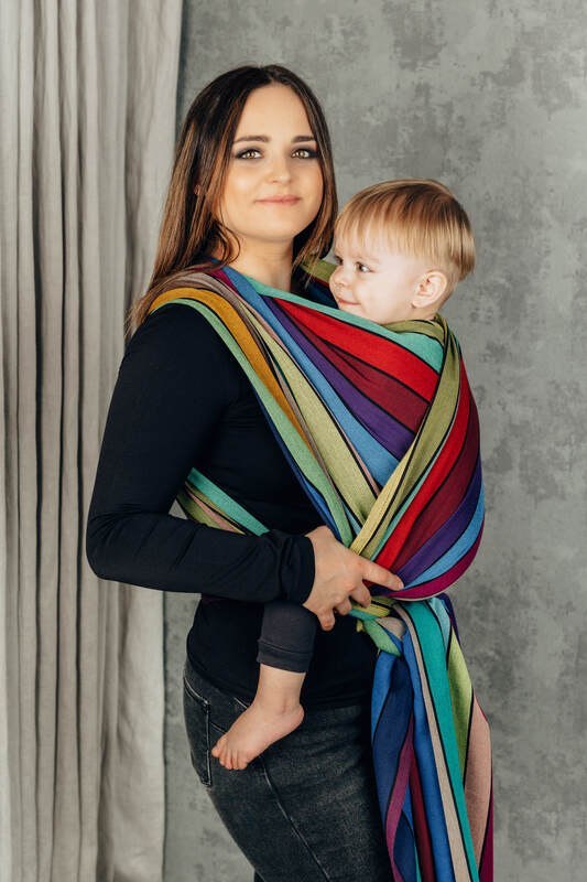 Chusta do noszenia dzieci, tkana splotem skośno-krzyżowym (100% bawełna) - KARUZELA BARW - rozmiar S