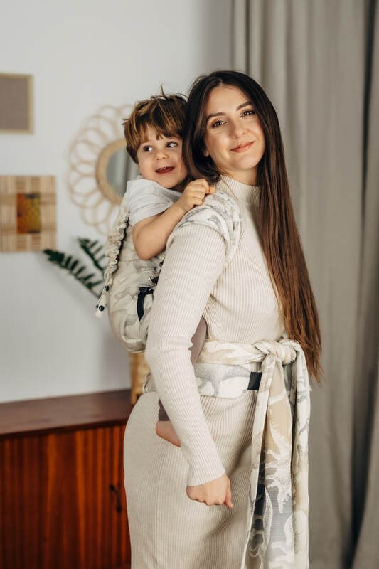 Nosidełko LennyHybrid Half Buckle, splot żakardowy, 100% bawełna, rozmiar preschool - PARK JURAJSKI - ICE DESERT